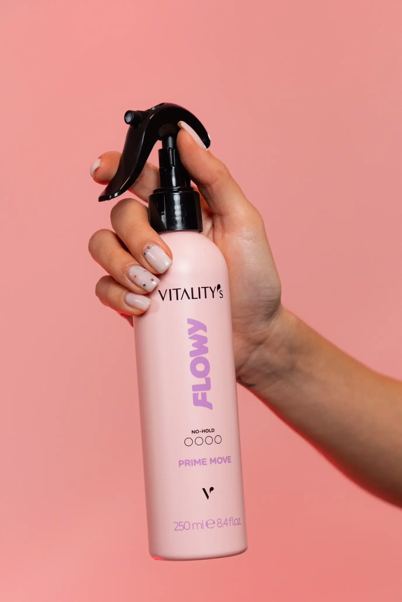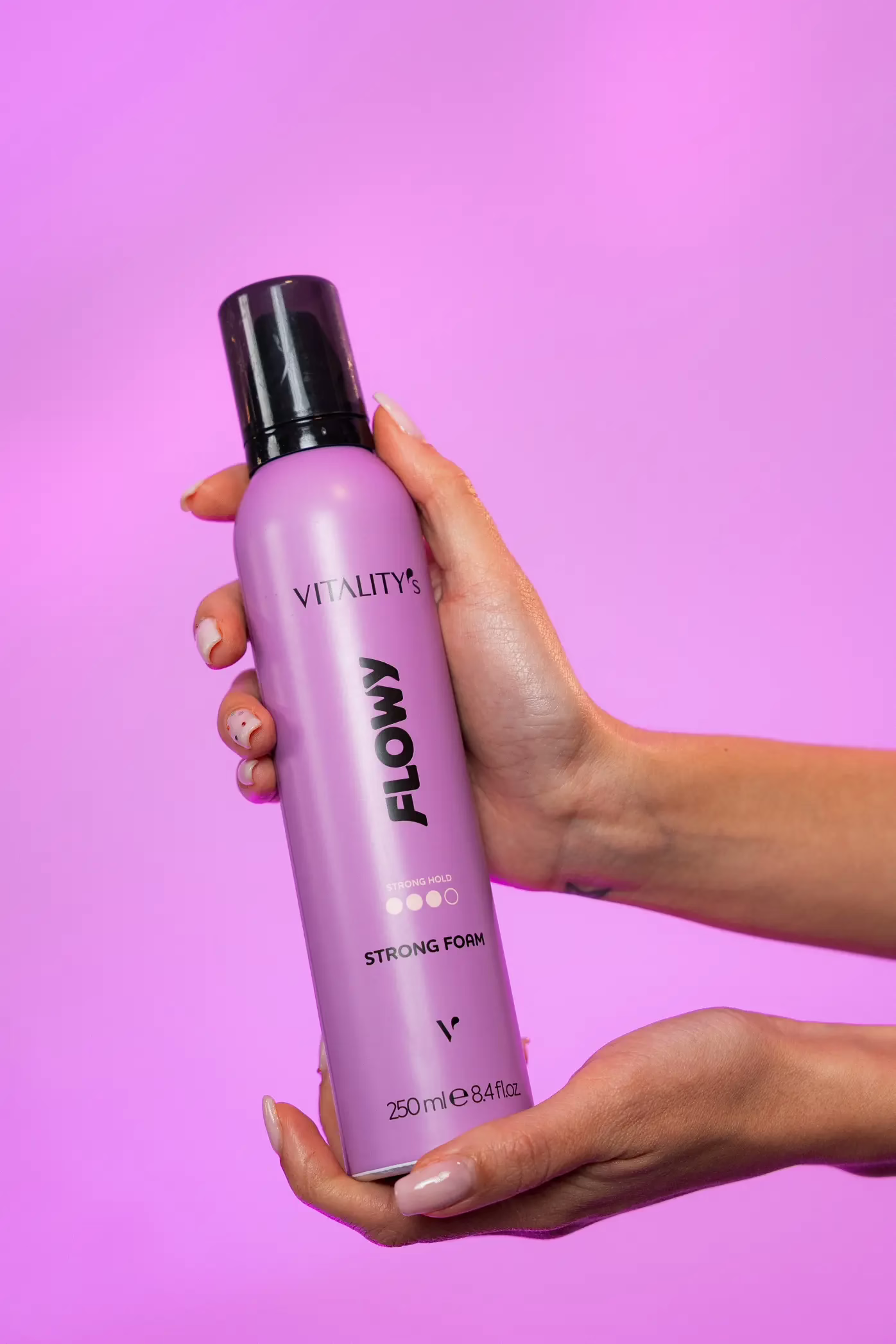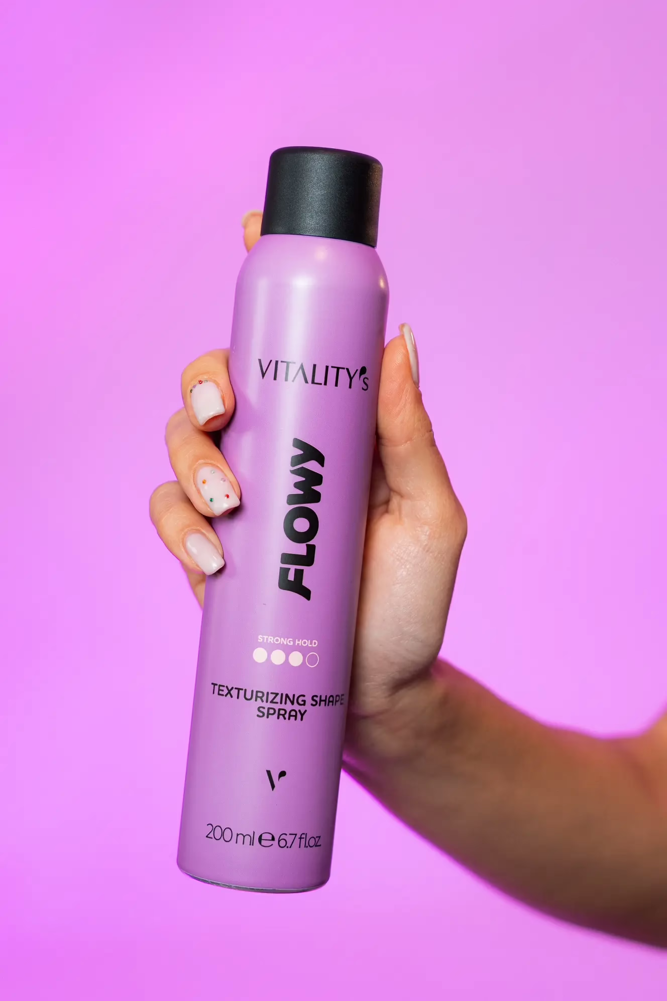 Rappresenta la performance professionale. Significa mantenere la forma, assicurare tenuta e struttura al look. Il verbo hold comunica controllo, sicurezza, affidabilità. È la promessa tecnica: i prodotti Flowy offrono styling duraturo e definito, ma senza rigidità.
